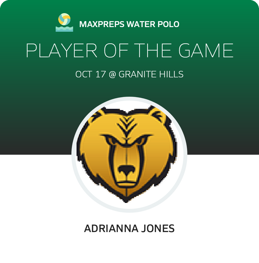 Congratulations to #1 Adrianna Jones for being selected the Sierra Pacific Girls Water Polo Player of the Game.