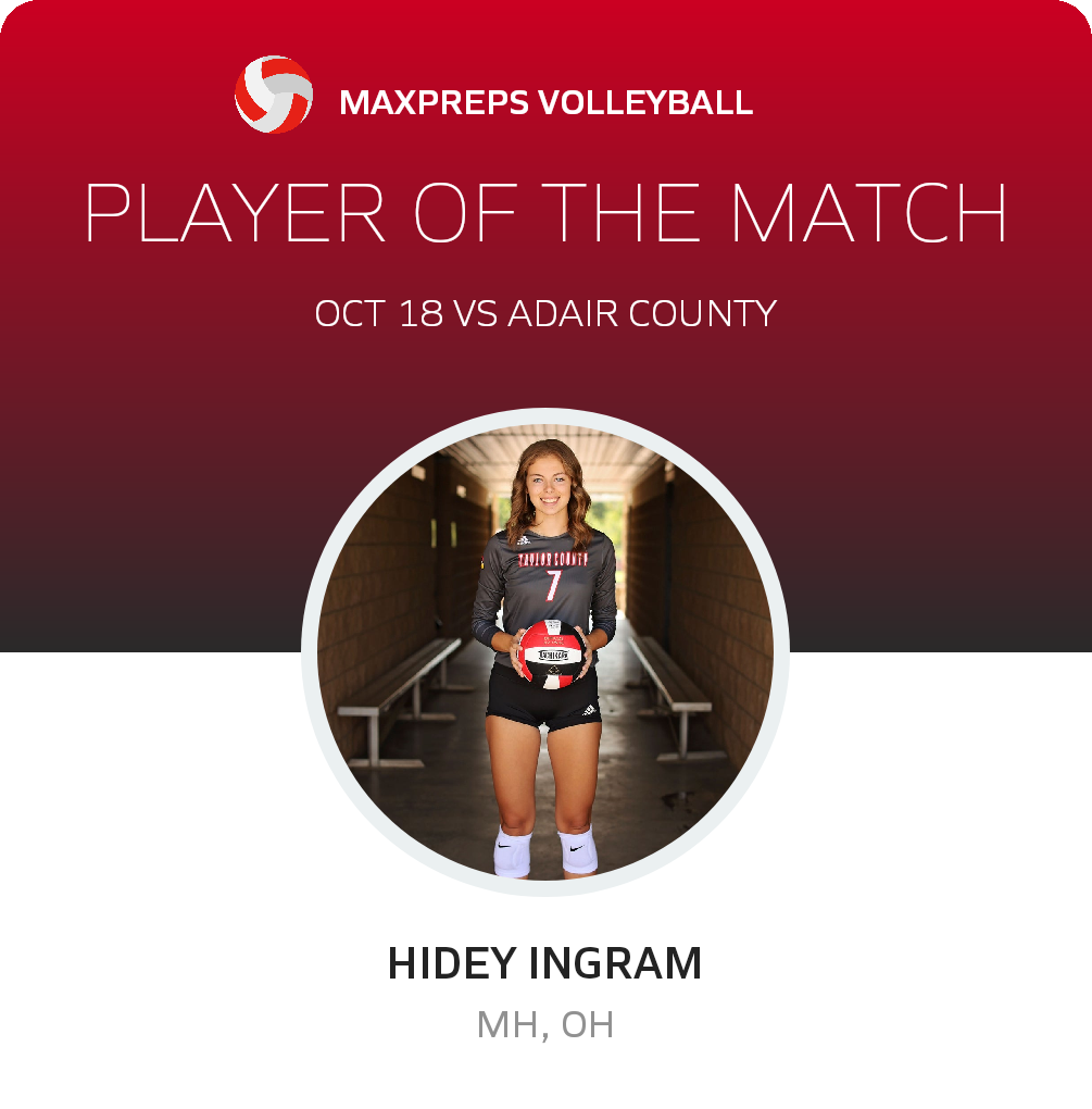 In Tuesday's league contest, the Taylor County Cardinals (Campbellsville, KY) volleyball squad were winner over the host Adair County Indians (Columbia, KY), by a margin of 3-0.