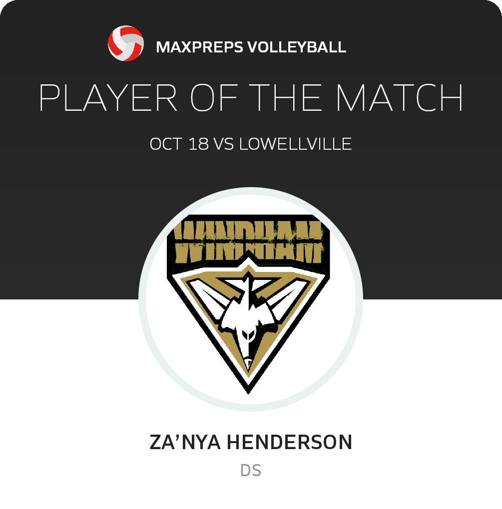 Congratulations to #25 Za’nya Henderson for being selected the Windham Volleyball Player of the Match.