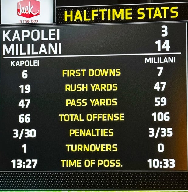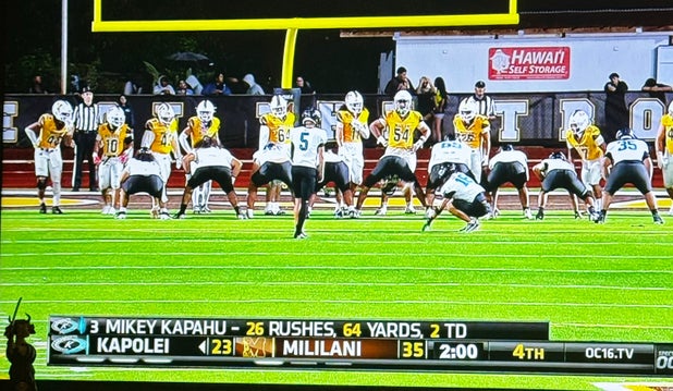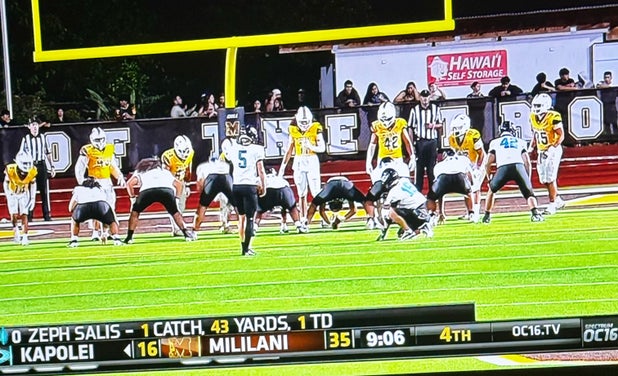 The Mililani Trojans (Mililani, HI) football were winner over the visiting Kapolei Hurricanes (Kapolei, HI), 35-24 in Saturday's league outing.