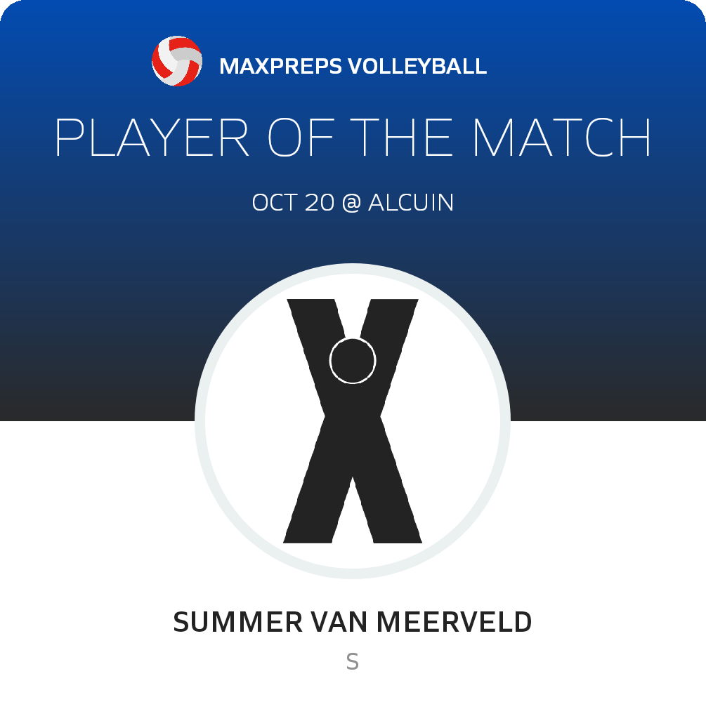 Congratulations to #5 Summer Van meerveld for being selected the Wylie Prep Academy Volleyball Player of the Match.
