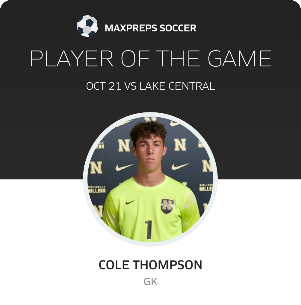 Congratulations to #1 Cole Thompson for being selected the Noblesville Soccer Player of the Match.