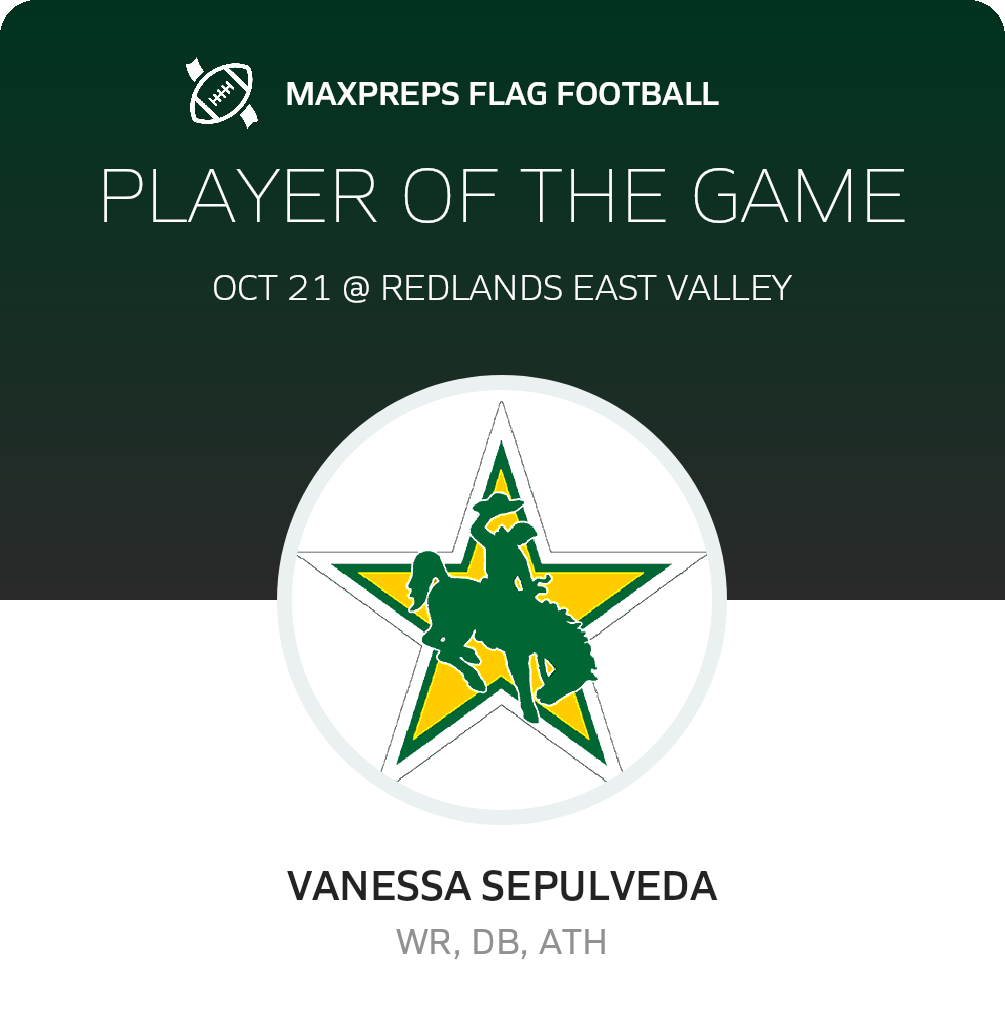 Congratulations to #2 Vanessa Sepulveda for being selected the Cajon Girls Flag Football Player of the Game.
