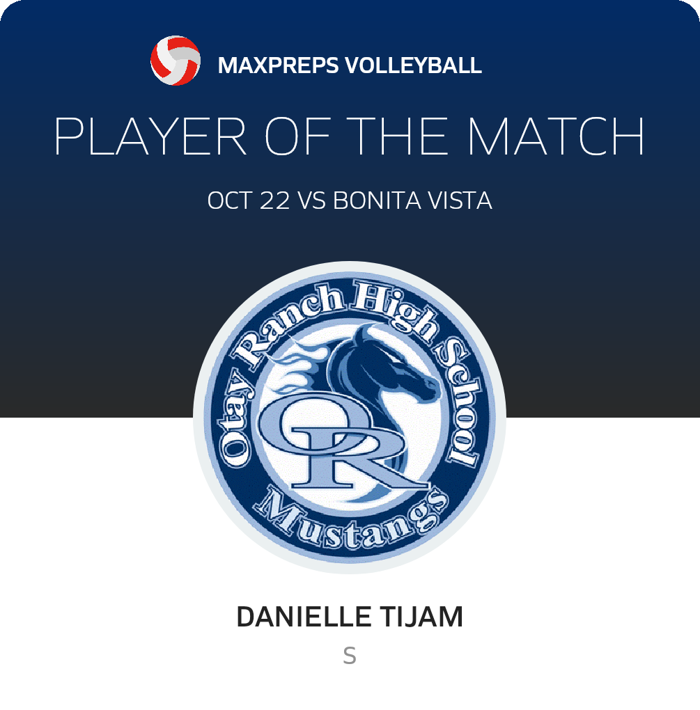 The Otay Ranch Mustangs volleyball team scored 2 points and restricted the visiting Bonita Vista Barons to 0 in the Mustangs league triumph on Tuesday.