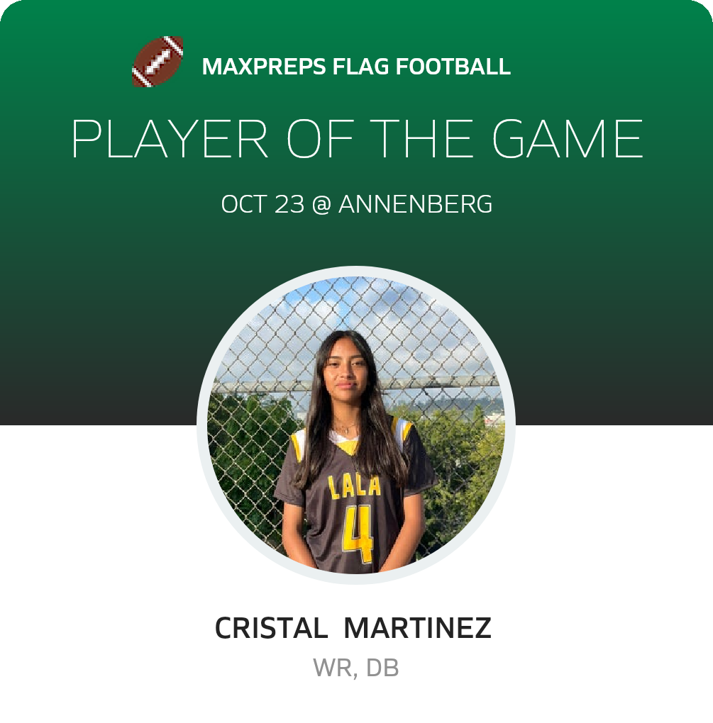 Congratulations to #4 Cristal Martinez for being selected the Los Angeles Leadership Academy Girls Flag Football Player of the Game.