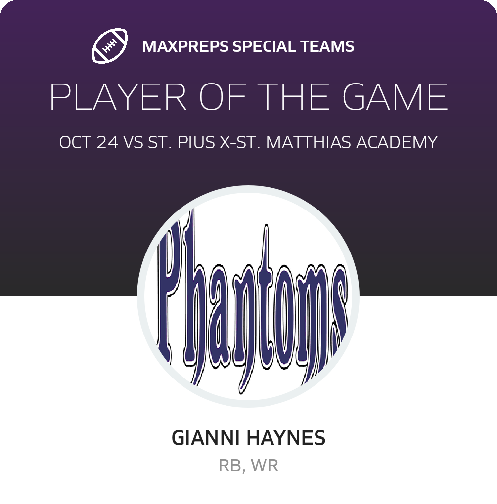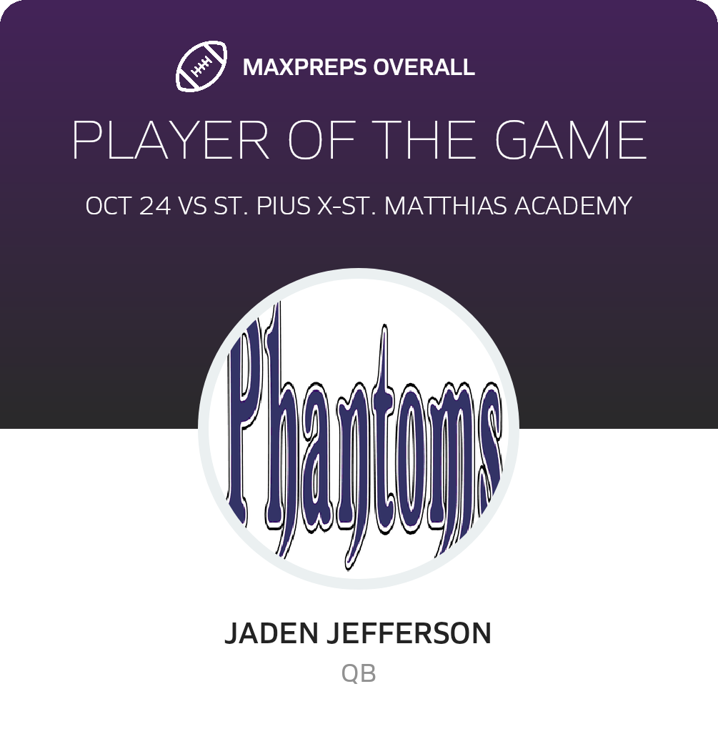 With the win, Cathedral advances its record to 5-4 on the season. The Phantoms travel to St. Francis (La Canada, CA) to encounter the Golden Knights in a Angelus bout on Friday, October 31. The Golden Knights go into the bout with a record of 1-8. St. Francis lost 42-35 in their recent league bout against Paraclete (Lancaster, CA)