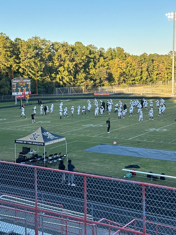 The crowd at Friday's league contest between the Mandarin Mustangs (Jacksonville, FL) and the visiting Oakleaf Knights (Orange Park, FL), witnessed Mandarin's football squad topple Oakleaf by a count of 31-14.