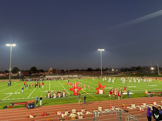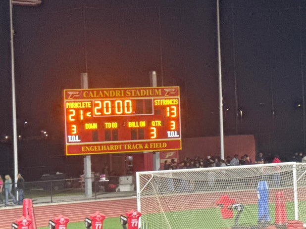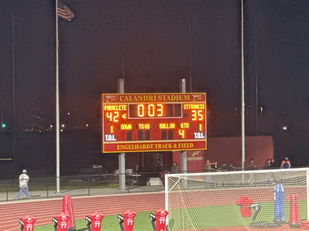 The crowd at Friday's league contest between the Paraclete Spirits (Lancaster, CA) and the visiting St. Francis Golden Knights (La Canada, CA), witnessed Paraclete's football squad edge St. Francis by a tally of 42-35.