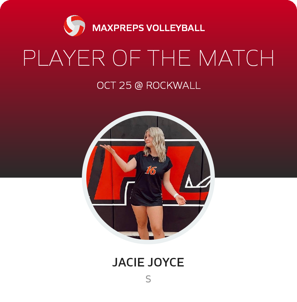Congratulations to #16 Jacie Joyce for being selected the Horn Volleyball Player of the Match.
