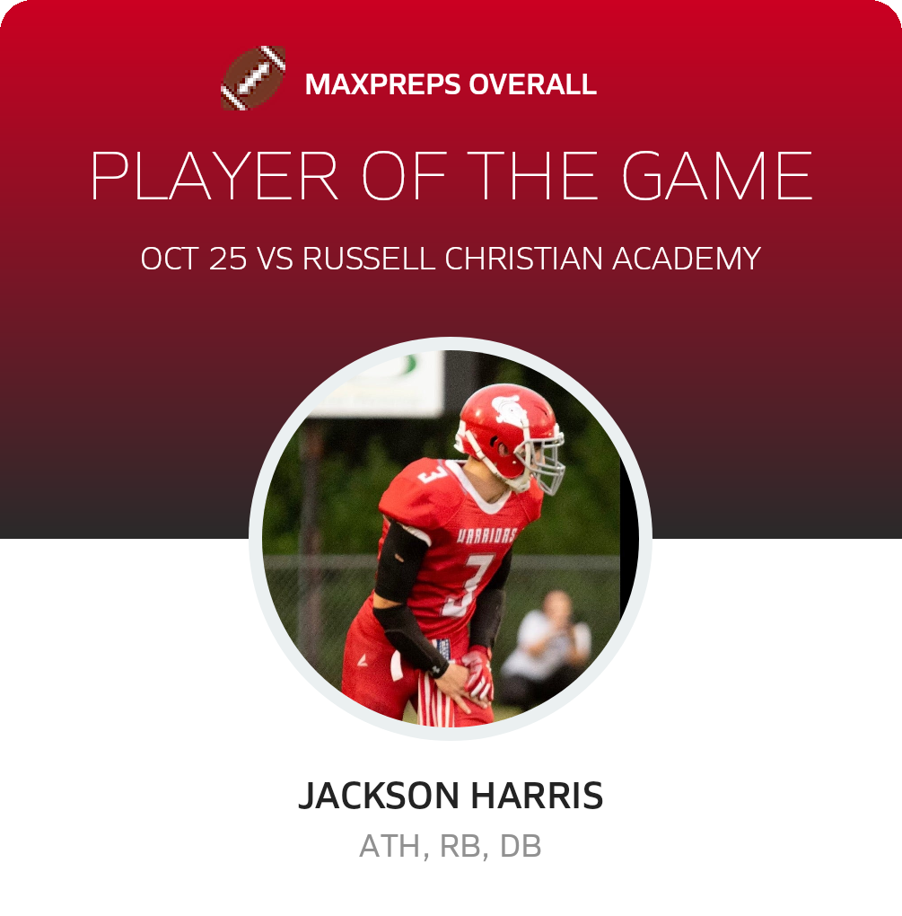 The Warriors now sport a 8-2 record. They take the field next when they travel to Jacksonville Christian Academy for a non-league outing on Friday, November 1. Russell Christian Academy will clash with a Thunder squad coming off a 58-26 non-league win over Cornerstone Christian (Rainsville, AL). The Thunder record now stands at 8-2.