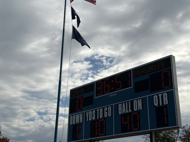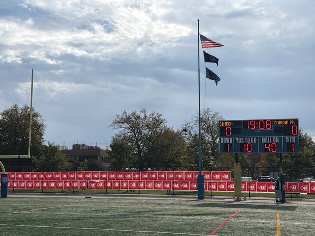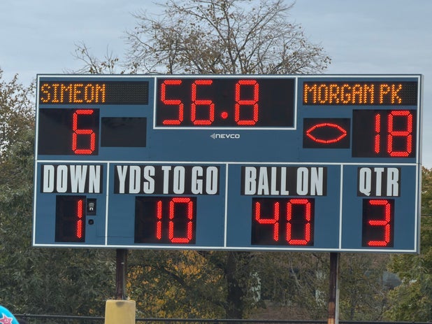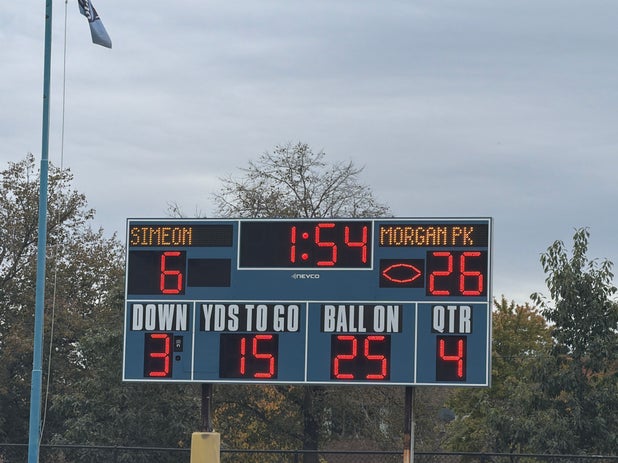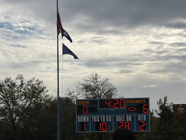 The Morgan Park Mustangs football squad scored 26 points and limited the visiting Simeon Wolverines to 6 in the Mustangs league triumph on Saturday.