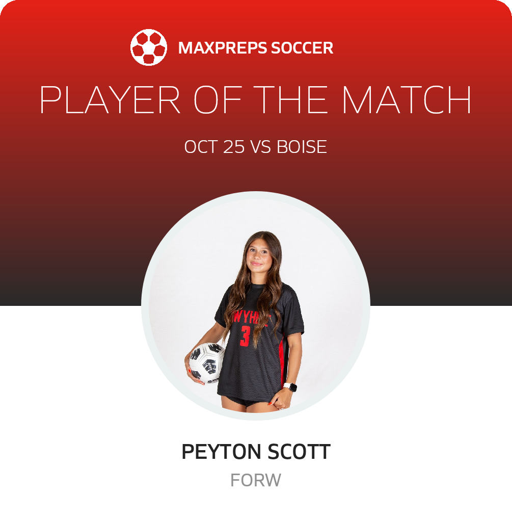 Congratulations to #3 Peyton Scott for being selected the Owyhee Girls Soccer Player of the Match.