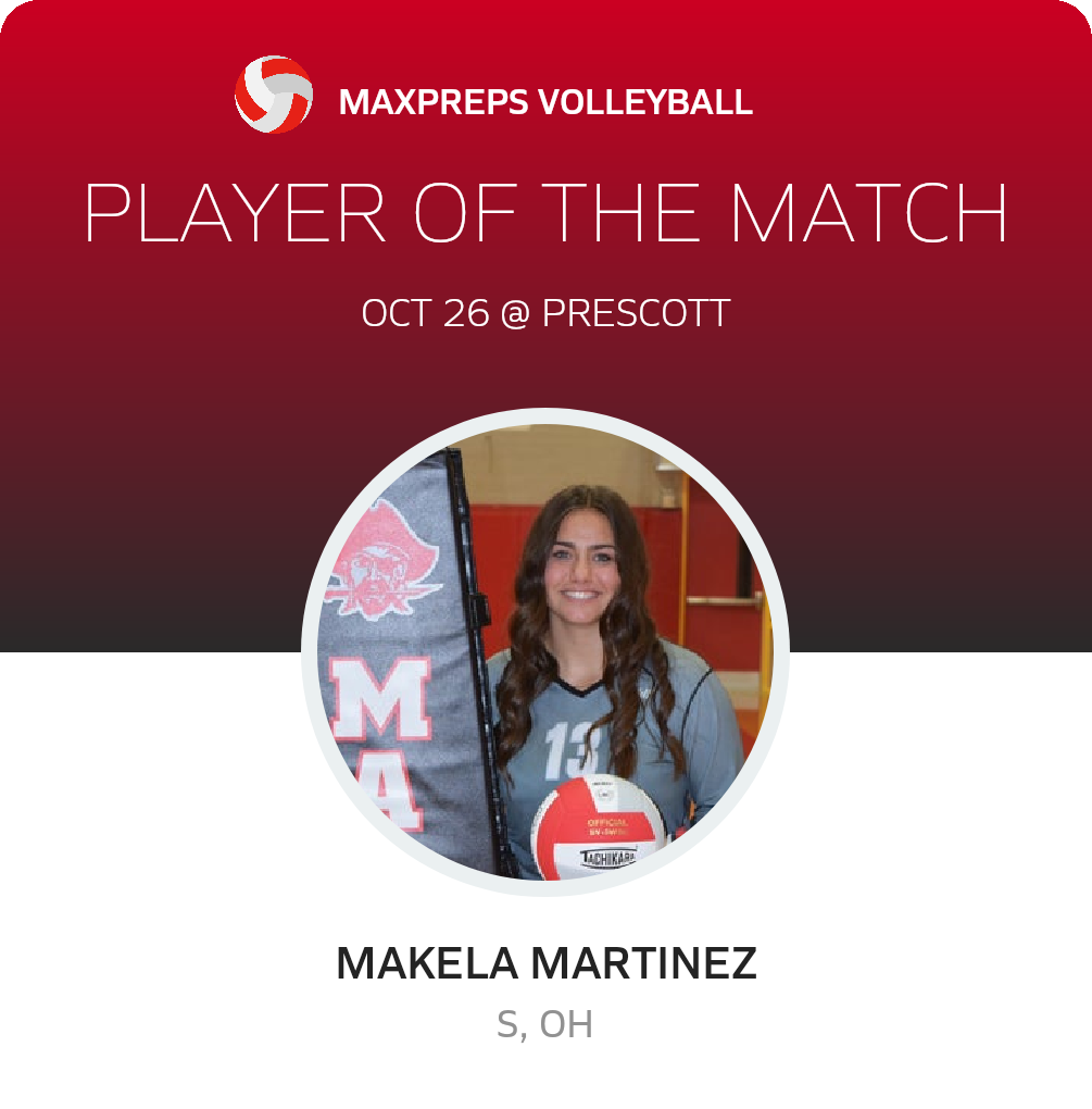 Congratulations to #13 Makela Martinez for being selected the Mingus Volleyball Player of the Match.