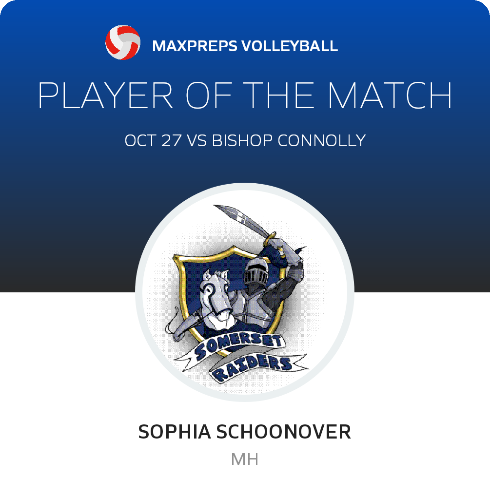 Congratulations to #13 Sophia Schoonover for being selected the Somerset Berkley Regional Volleyball Player of the Match.
