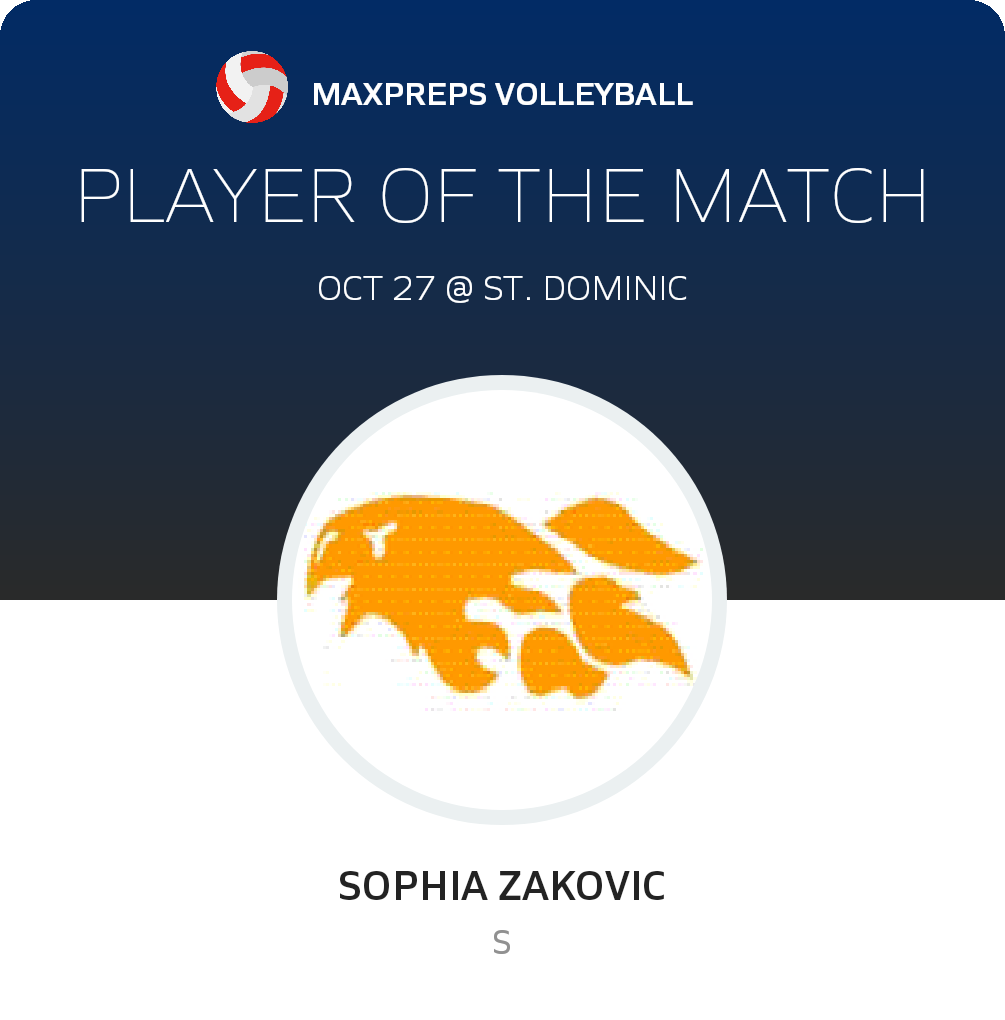 Congratulations to #6 Sophia Zakovic for being selected the Kellenberg Memorial Volleyball Player of the Match.