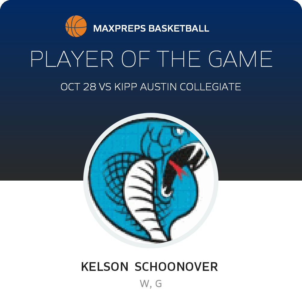 Congratulations to #1 Kelson Schoonover for being selected the Victoria Cobra HomeSchool Basketball Player of the Game.