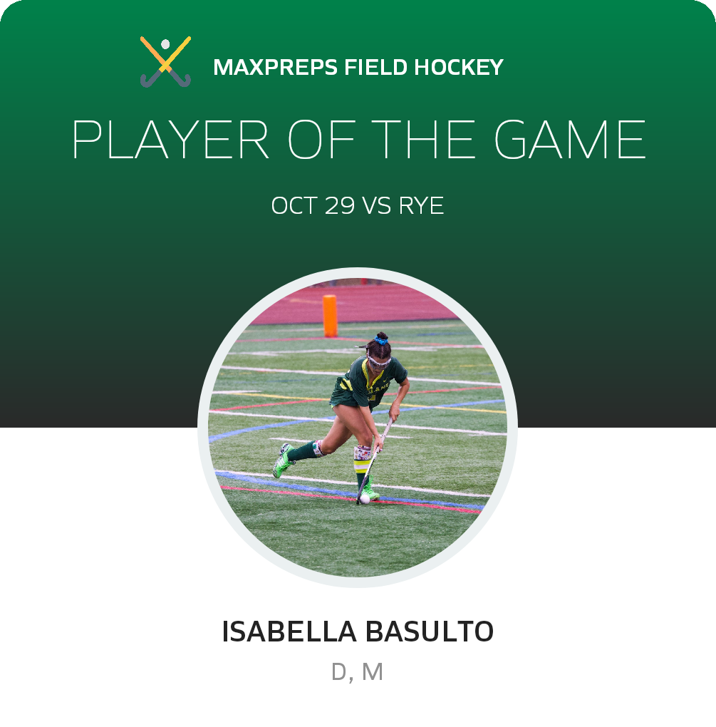 Congratulations to #12 Isabella Basulto for being selected the Lakeland Field Hockey Player of the Game.