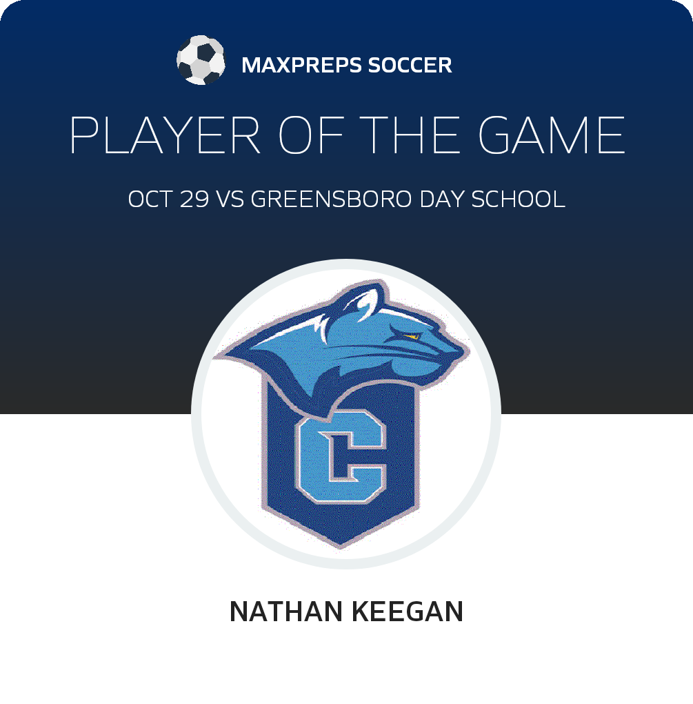Congratulations to #GK Nathan Keegan for being selected the Calvary Day School Soccer Player of the Match.
