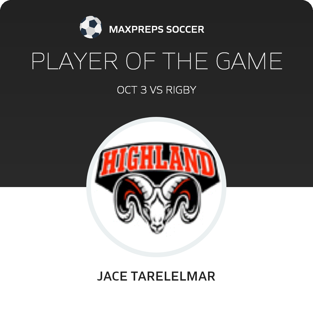 Congratulations to #11 Jace Tarelelmar for being selected the Highland Soccer Player of the Match.