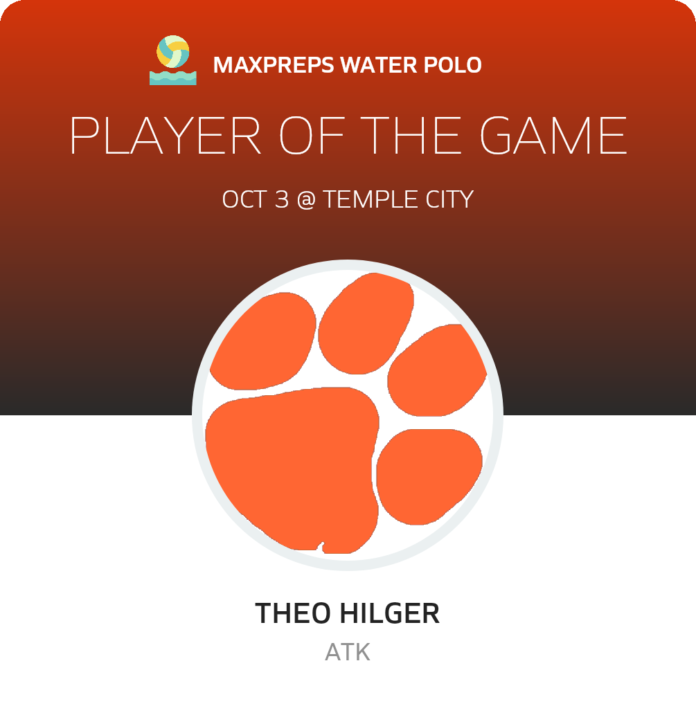 Congratulations to #4 Theo Hilger for being selected the South Pasadena Water Polo Player of the Game.