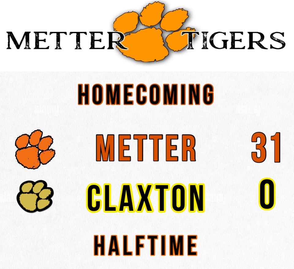 The crowd at Friday's league contest between the Metter Tigers (Metter, GA) and the visiting Claxton Tigers (Claxton, GA), witnessed Metter's football squad wallop Claxton by a tally of 45-0.
