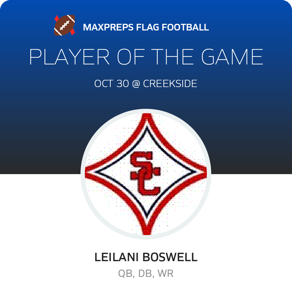 In Wednesday's non-league game, the Sandy Creek Patriots (Tyrone, GA) flag football team were victorious over the host Creekside Seminoles (Fairburn, GA), by a score of 13-0.
