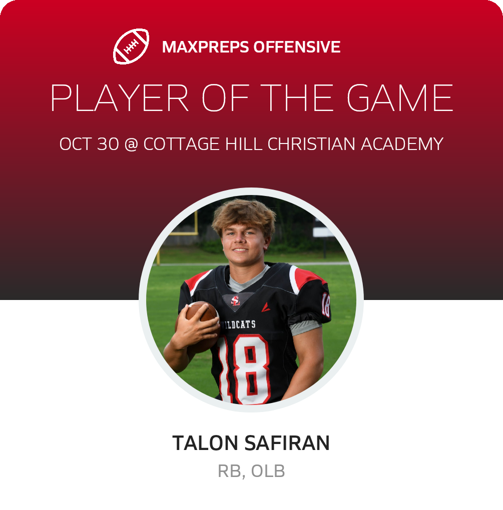 Congratulations to #18 Talon Safiran (offensive), #23 Mac Boone (defensive) and #24 Ryland Yasurek (special teams) for being selected the St. Luke's Episcopal Football Players of the Game.