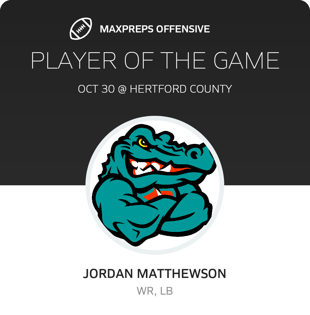 Congratulations to #7 Noah Congelton (overall), #15 Jordan Matthewson (offensive), #10 Mike Lee (defensive) and #11 Kwahli Basnight (special teams) for being selected the Martin County Football Players of the Game.