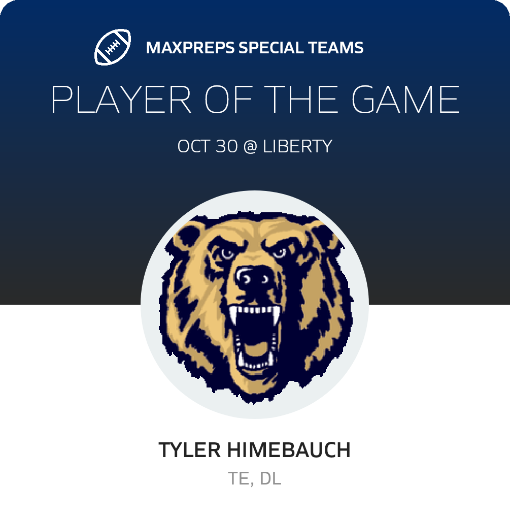 Congratulations to #56 Trek Leonard (overall), #90 Jake Bossinger (offensive), #44 Cye Oringdulph (defensive) and #99 Tyler Himebauch (special teams) for being selected the Palmer Ridge Football Players of the Game.