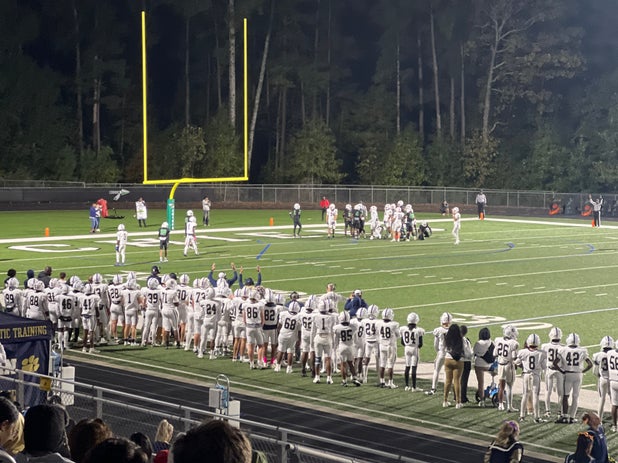 Extra point is wide left. Newnan up by one point with a minute 16 to go.