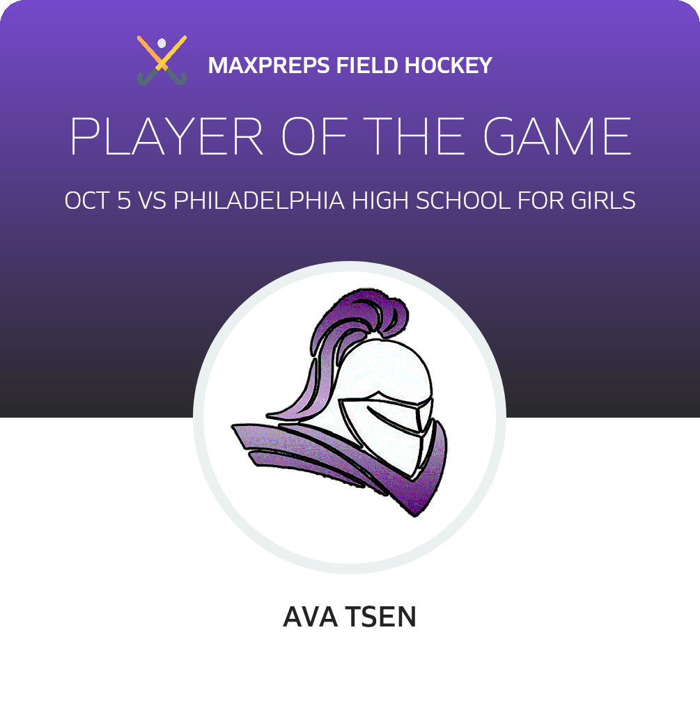 Congratulations to #8 Ava Tsen for being selected the Arts Academy at Benjamin Rush Field Hockey Player of the Game.