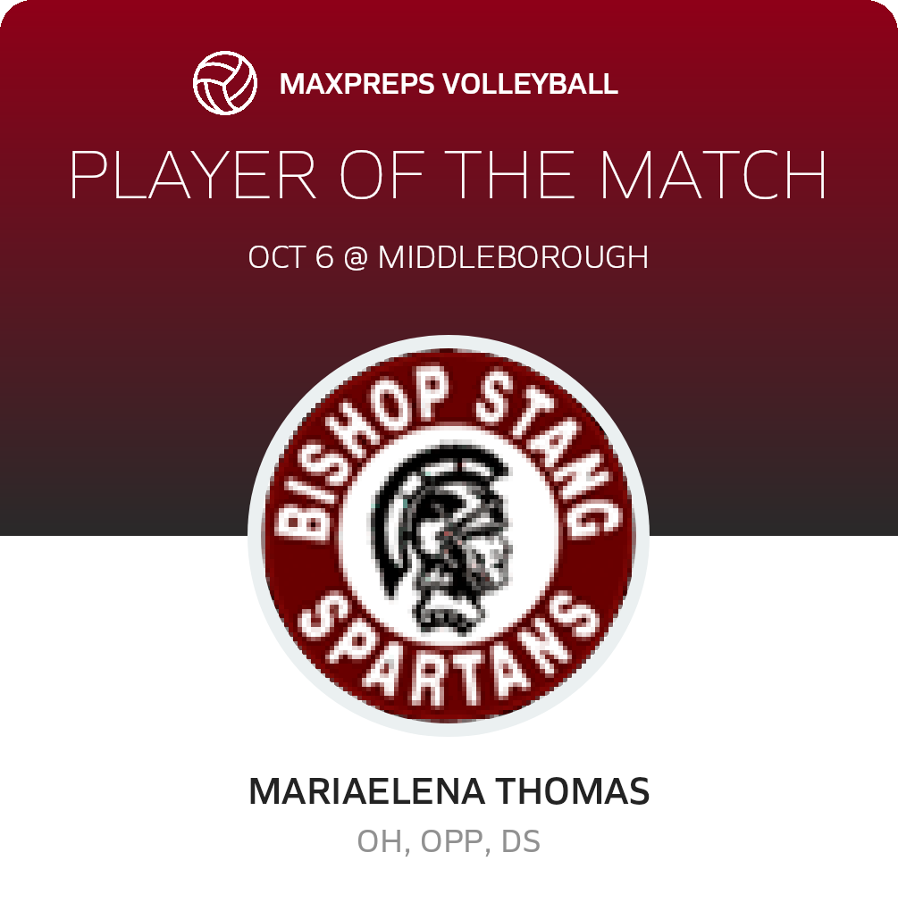 The Middleborough Sachems volleyball squad (Middleborough, MA), dropped 3-0 in Monday's non-league battle with the visiting Bishop Stang Spartans (North Dartmouth, MA)