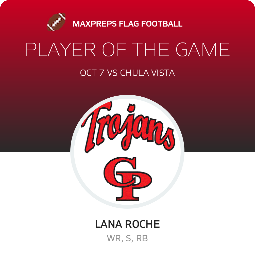 The crowd at Monday's league contest between the Castle Park Trojans (Chula Vista, CA) and the visiting Chula Vista Spartans (Chula Vista, CA), witnessed Castle Park's flag football squad topple Chula Vista by a count of 46-27.