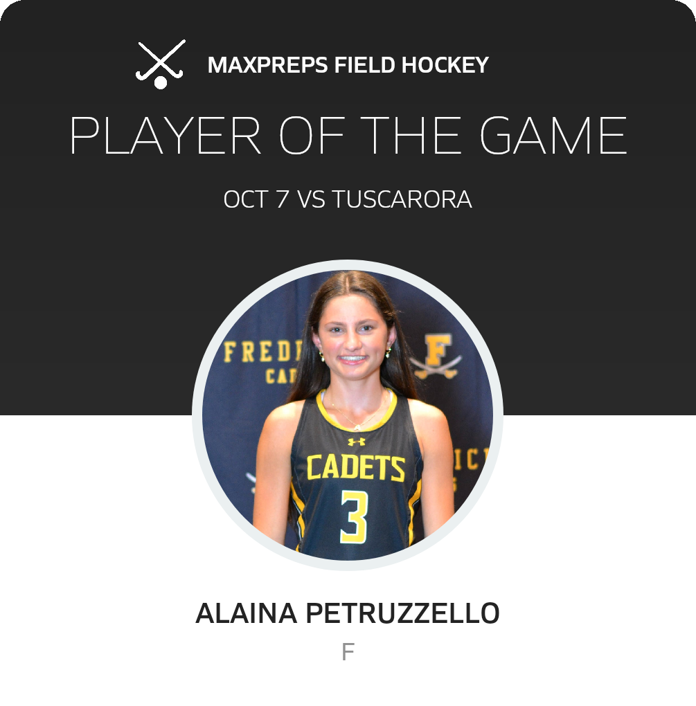 Congratulations to #3 Alaina Petruzzello for being selected the Frederick Field Hockey Player of the Game.