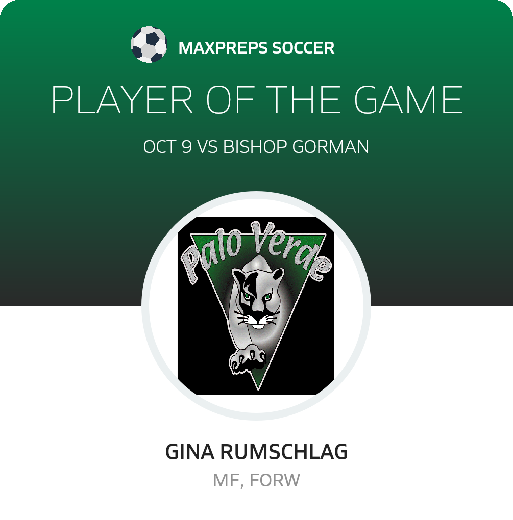 Congratulations to #21 Gina Rumschlag for being selected the Palo Verde Girls Soccer Player of the Match.