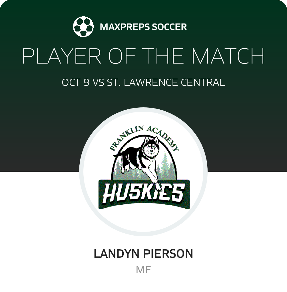Congratulations to #9 Landyn Pierson for being selected the Franklin Academy Soccer Player of the Match.