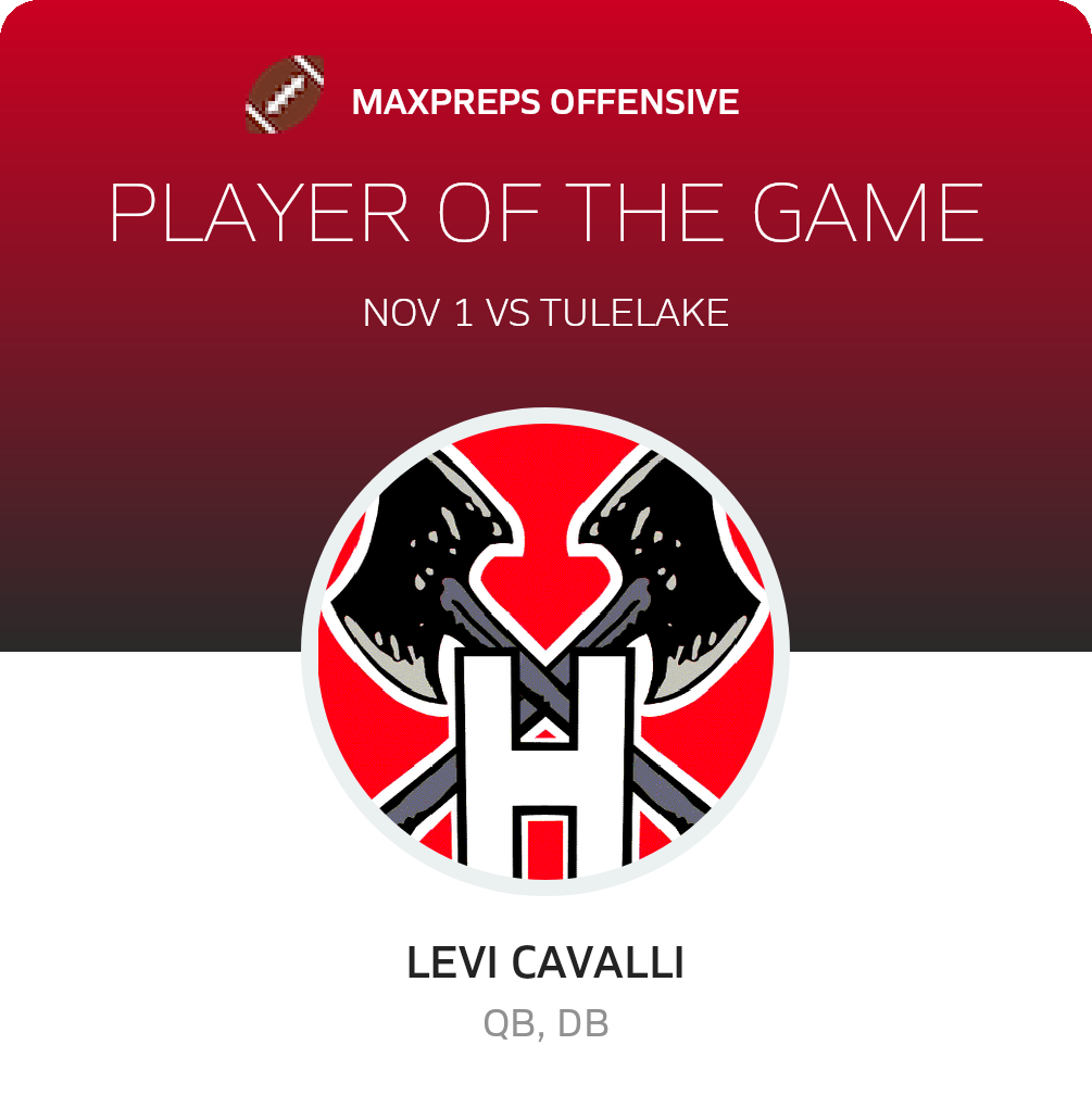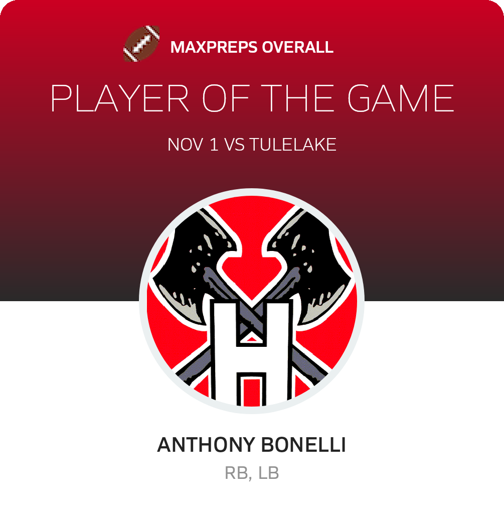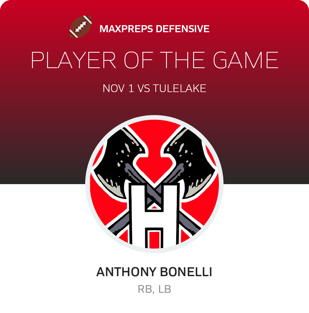 Congratulations to #23 Anthony Bonelli (overall and defensive) and #11 Levi Cavalli (offensive) for being selected the Hayfork Football Players of the Game.