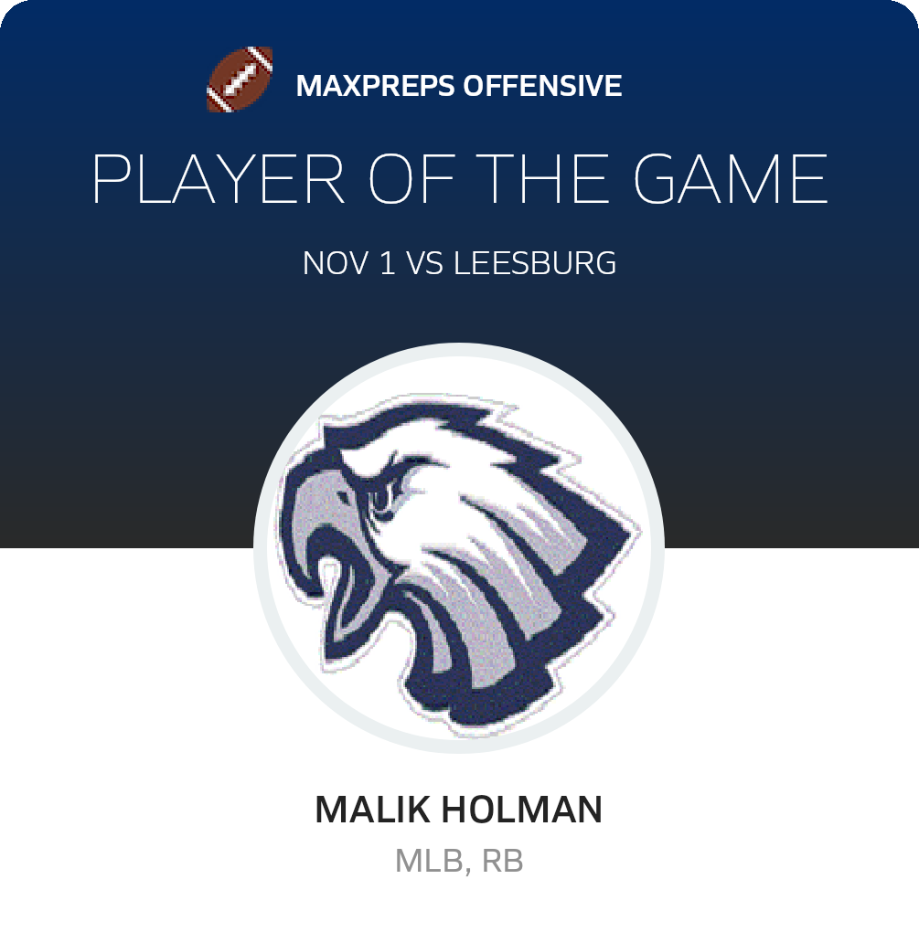 Congratulations to #4 Lamar Garrison (overall), #8 Xavier Irizarry (offensive), #6 Sylvester Dority (defensive) and #40 William Henderson (special teams) for being selected the Leesburg Football Players of the Game.