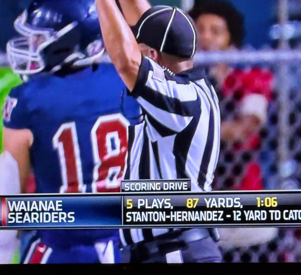 The crowd at Saturday's league contest between the 'Aiea Na Alii ('Aiea, HI) and the host Wai'anae Seariders (Wai'anae, HI), witnessed 'Aiea's football squad edge Wai'anae by a tally of 9-7.
