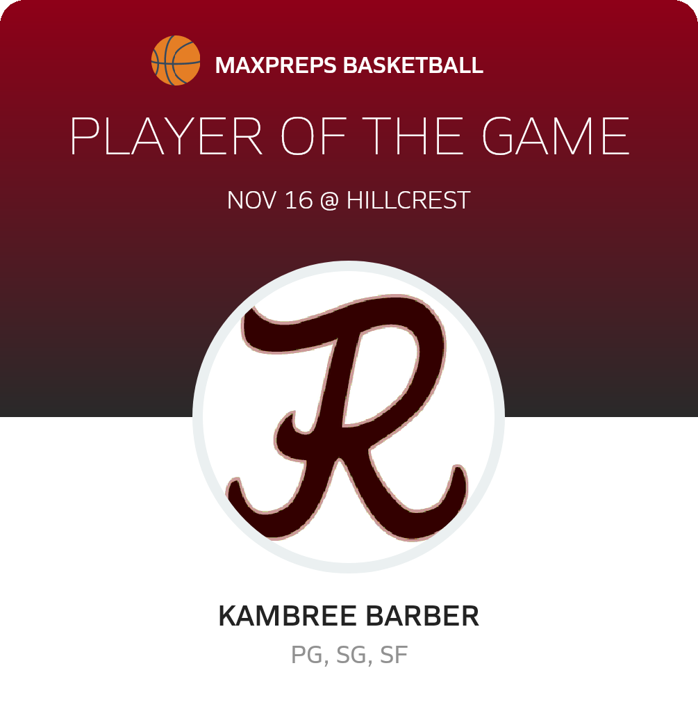 Congratulations to #14 Kambree Barber for being selected the Rigby Girls Basketball Player of the Game.