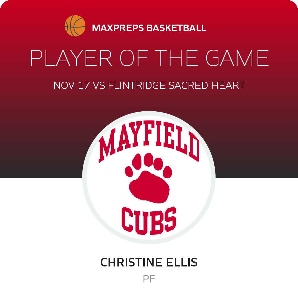 Next up, the Cubs play the Ramona Convent Tigers (Alhambra, CA) in a non-league challenge, on Tuesday, November 22. Mayfield will attempt to upgrade on its 1-1 season record. The Tigers come into the challenge with a 1-1 record after their 44-40 non-league win over San Marino (San Marino, CA).