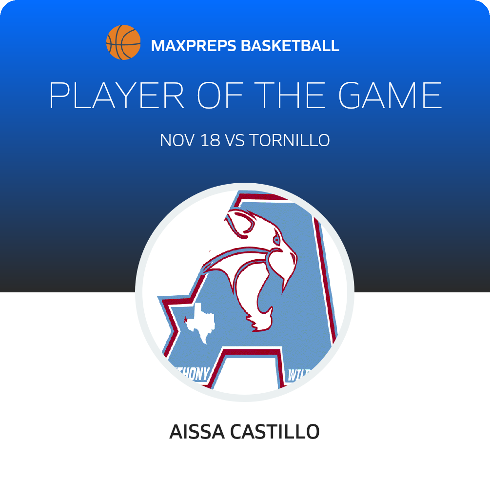 Congratulations to #2 Aissa Castillo for being selected the Anthony Girls Basketball Player of the Game.