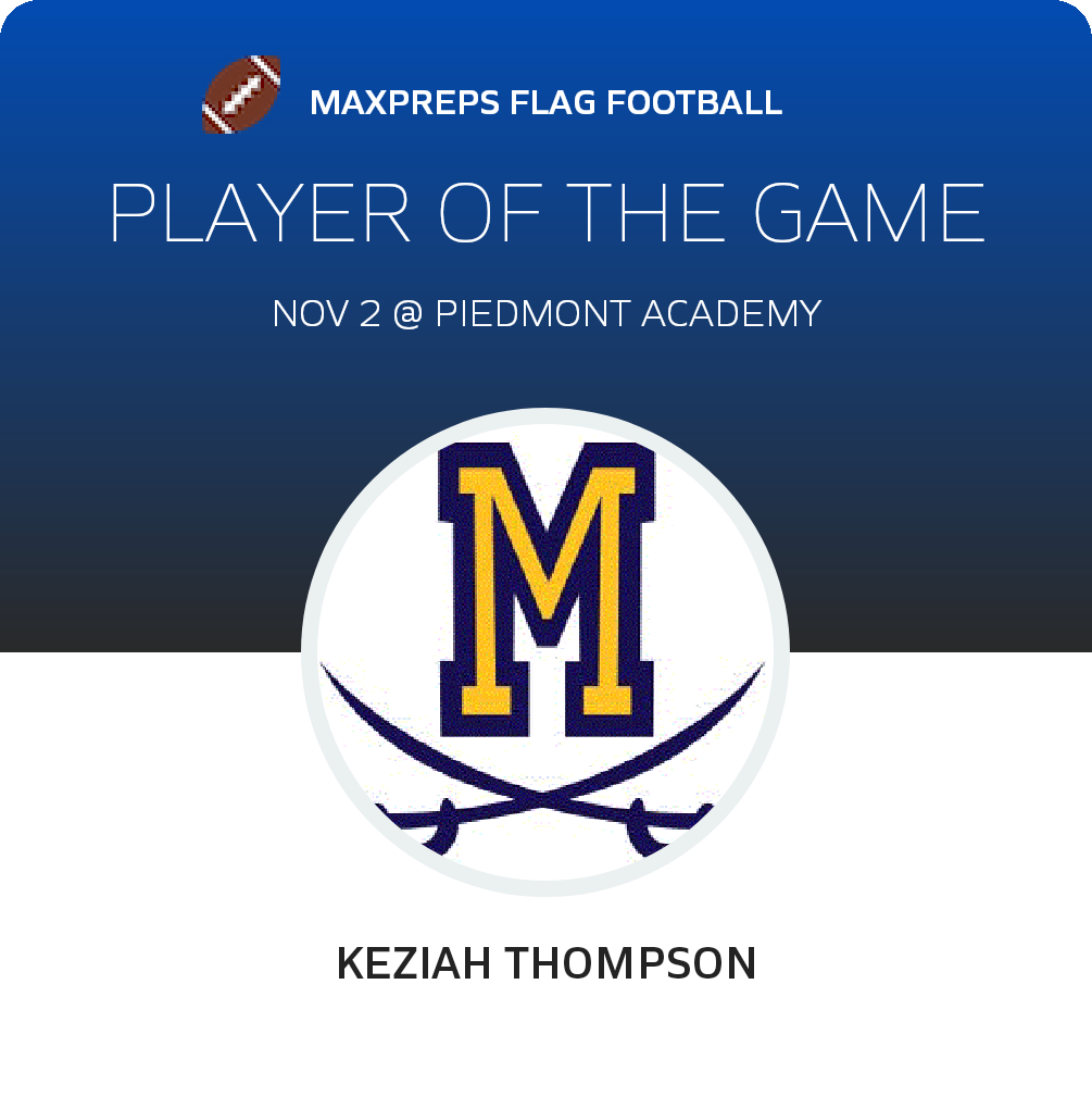 Congratulations to #12 Keziah Thompson for being selected the Mount de Sales Academy Girls Flag Football Player of the Game.