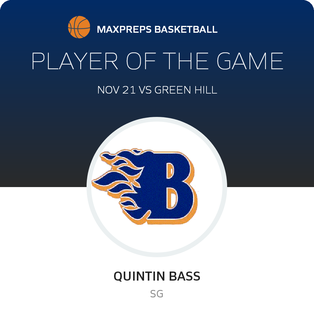 Congratulations to #12 Quintin Bass for being selected the Blackman Basketball Player of the Game.
