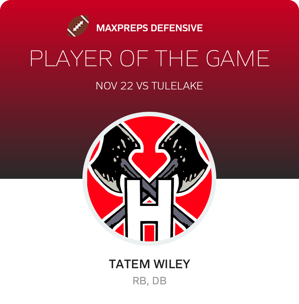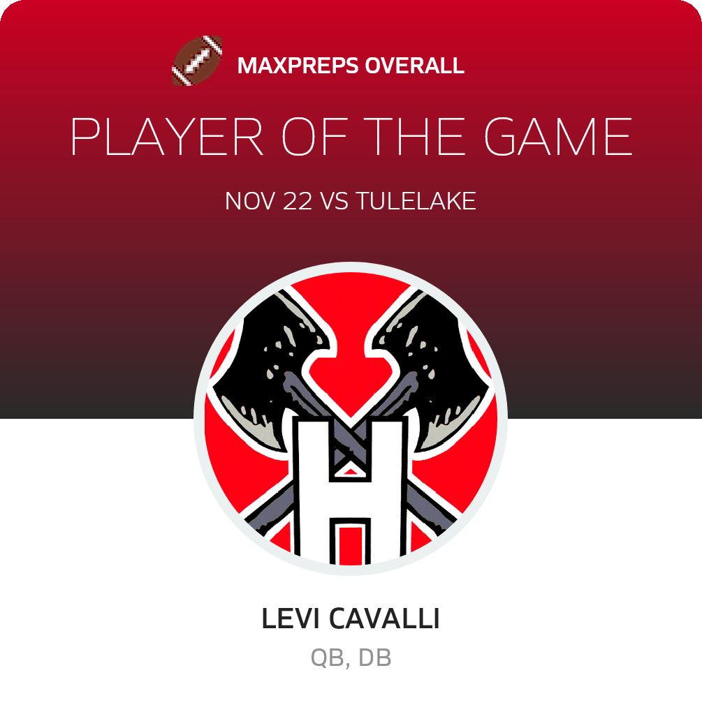 Congratulations to #11 Levi Cavalli (overall and offensive) and #14 Tatem Wiley (defensive) for being selected the Hayfork Football Players of the Game.