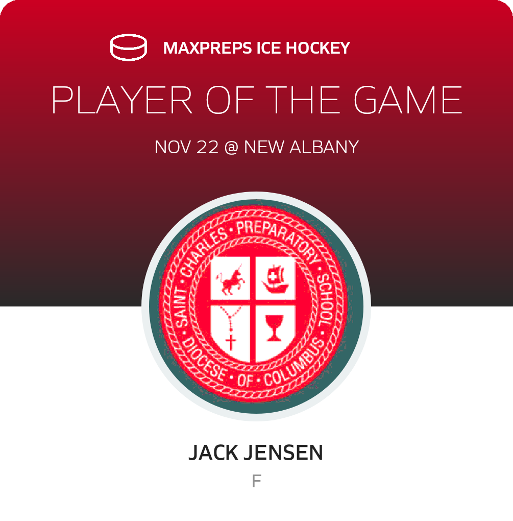 Congratulations to #12 Jack Jensen for being selected the St. Charles Ice Hockey Player of the Game.
