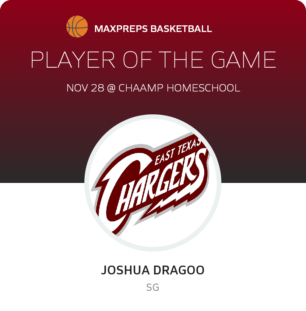 The Chargers now own a 2-1 record. They play next when they travel to White Oak for a non-league outing on Thursday, December 1. East Texas Homeschool Sports will clash with a Roughnecks squad coming off a 47-44 non-league win over Tenaha (Tenaha, TX). The Roughnecks record now stands at 2-2.