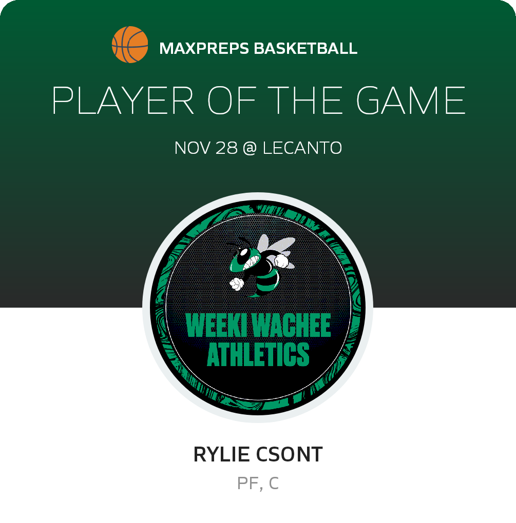 Congratulations to #22 Rylie Csont for being selected the Weeki Wachee Girls JV Basketball Player of the Game.