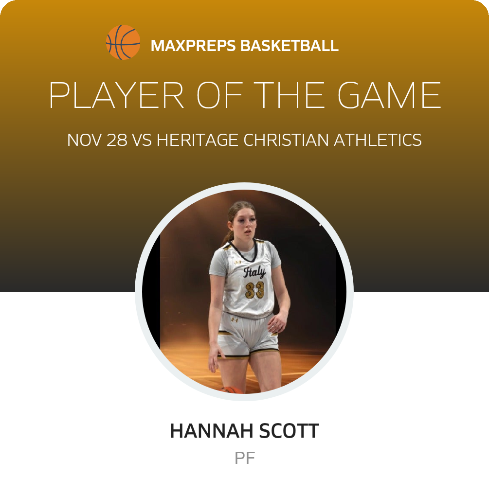 Congratulations to #33 Hannah Scott for being selected the Italy Girls Basketball Player of the Game.