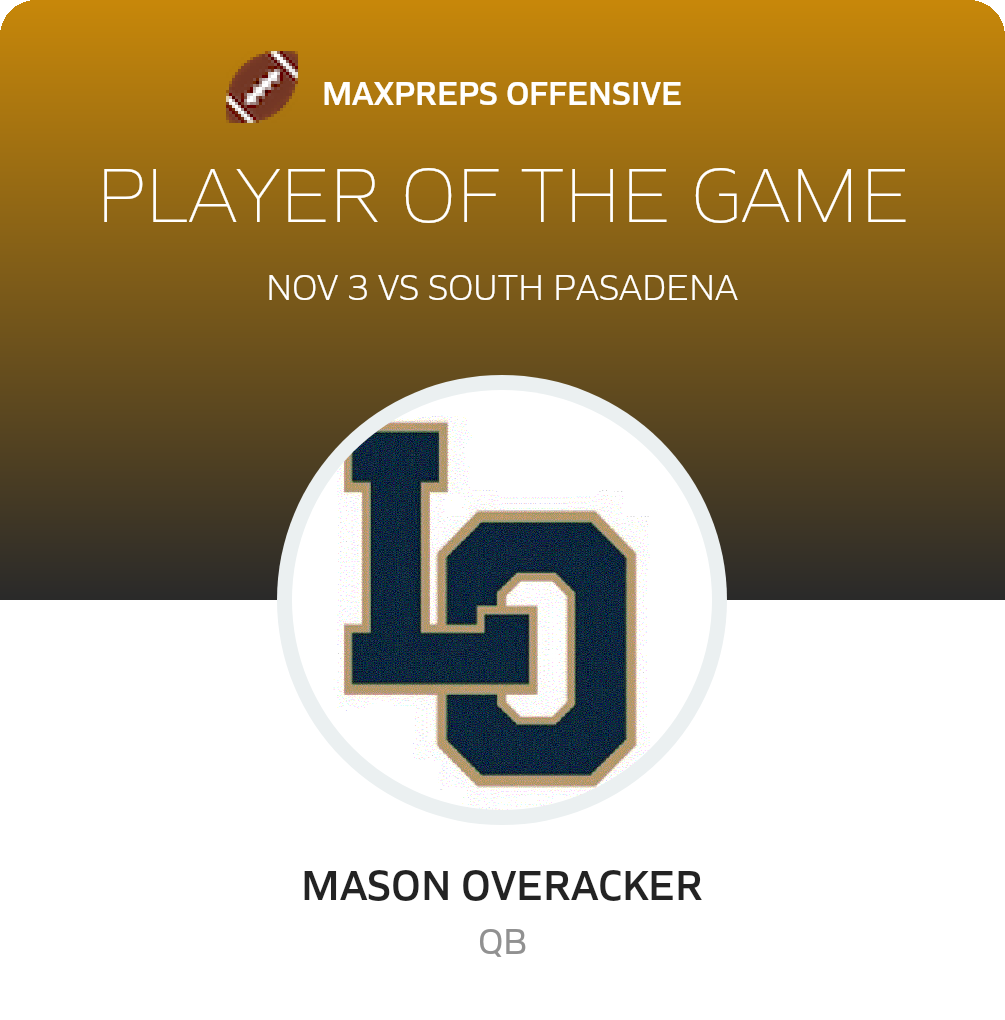 Congratulations to #7 Mason Overacker (offensive) and #11 Zenen Peña (defensive) for being selected the Los Osos Football Players of the Game.